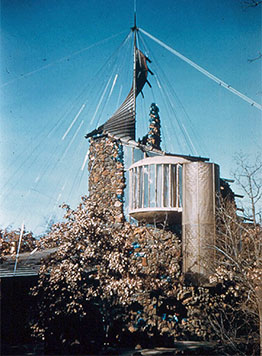 Far from being a universal style, Modernism is imbued with a peculiarly Northern European prudishness, Puritanism and hyper masculinity. The stripping of architecture of ornament, ornament which usually communicates culture and history (whether national or local or community) was intended to bring the Marxist end of history, but instead has impoverished the possibility of local cultures. Modernism's hyper masculinity can be seen in the cult of the machine, the imagining of buildings as large machines as in the work of Calatrava, and the confluence of the imagery of Science Fiction fantasy and architectural style. This is indeed, "space cowboy" architecture. Bruce Goff, one of the few identifiable queer practitioners trying to work within the strictures of Modernism was essentially marginalized as his work was seen to be too extreme, too "camp."(3) It seems to us that modernist architecture is kept by the defenders of its moralistic formulation to be strictly an expression of a sober masculinity.
